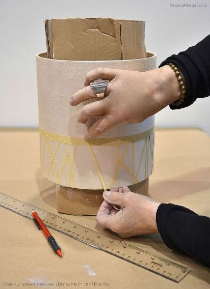 Debbie hayes of my patch of blue sky shares her bright idea on how to dress up any plain jane lamp with her diy fabric lampshade makeover. Modern lamps are expensive and also very hard to fit the personal decorative theme of the home. Take an ordinary lamp shade and make it extraordinary with stencils tape and metallic paint.
