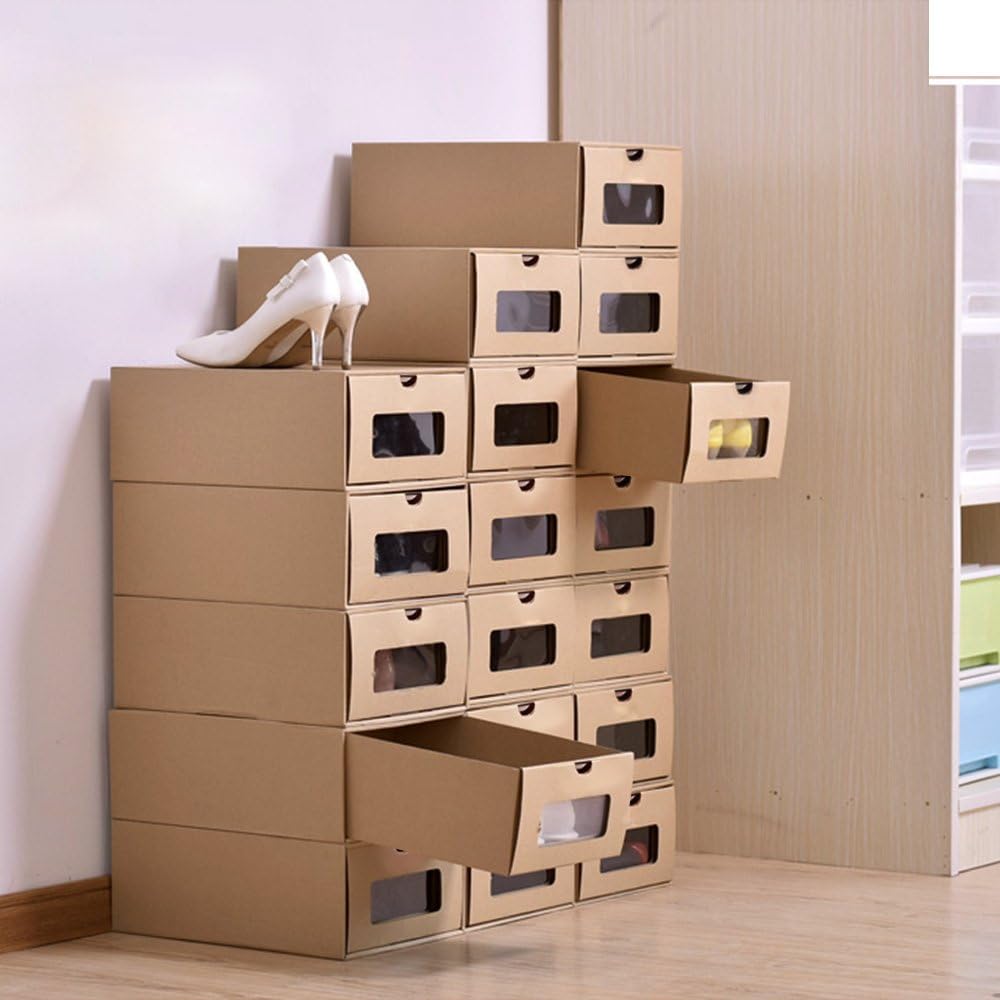 Mvpower 20pcs Shoe Box Diy Visible Cardboard Shoe Storage Boxes For Ladies Men Shoe Bags Home Kitchen
