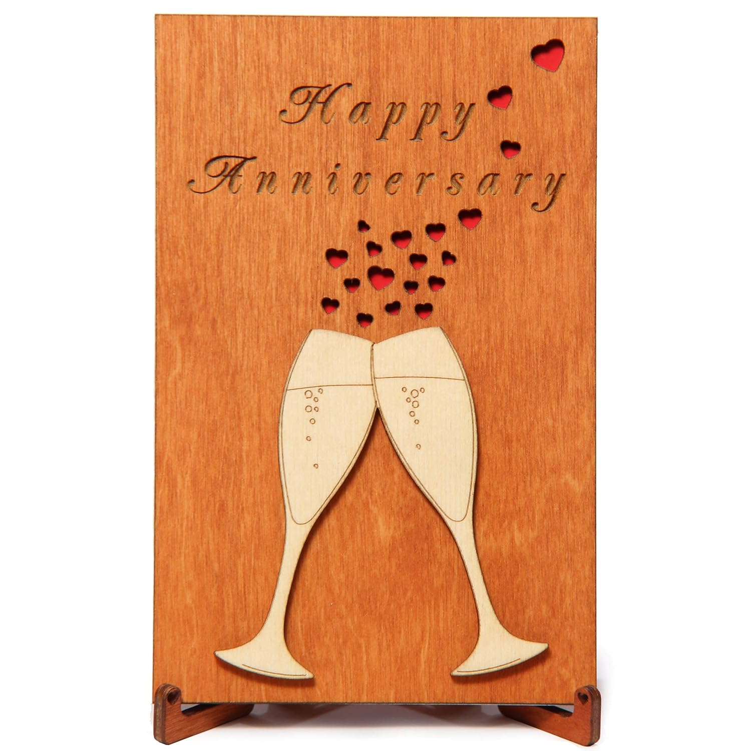 Happy Anniversary Real Wood Greeting Card With Stand Best Handmade Wooden Wedding Anniversary Gift Cute Present For Husband Him Men Dad Boyfriend Or Wife Her Women Mom Girlfriend And Parents Or Couple