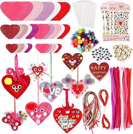 Amazon Com Valentines Day Crafts For Kids 331pcs Diy Valentines Heart Craft Set For School Gift 108 Hearts 50 Googly Eyes 60 Pom Poms 36 Wooden Beads Craft Supplies For Valentines Party