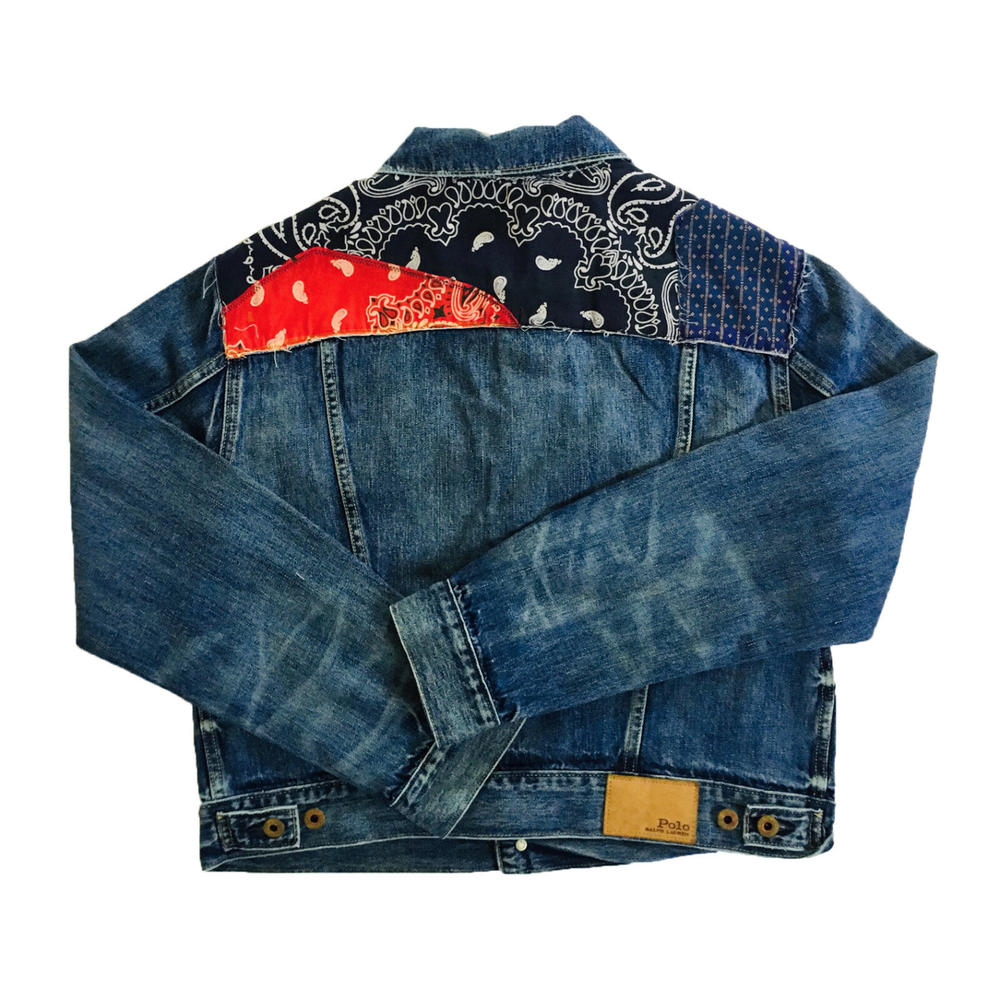 Up Cycled Gap Denim Jacket Bandana Patched Back Medium Wash Etsy
