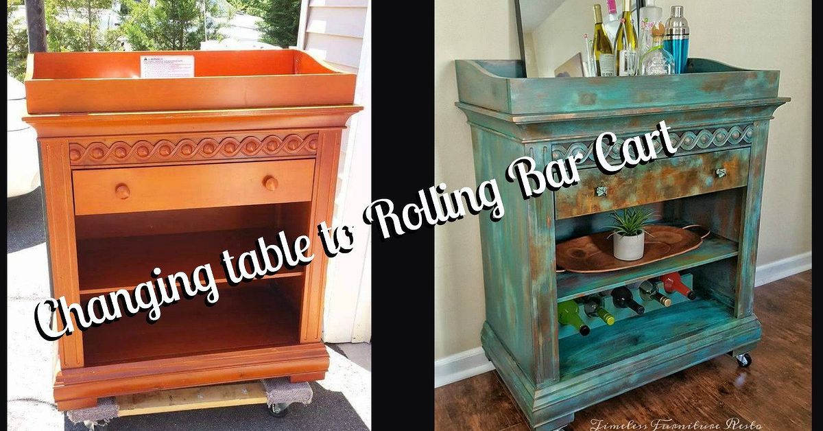Diy Table Makeover Changing Table Upcycled To A Bar Cart Hometalk