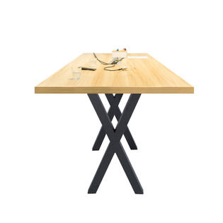 The combination between metal table legs and wooden tops is not restricted to dining tables.