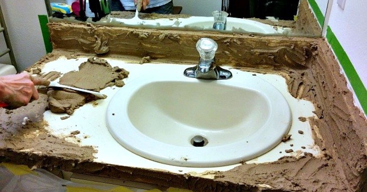 How To Refresh A Dated Vanity Countertop With Concrete Hgtv