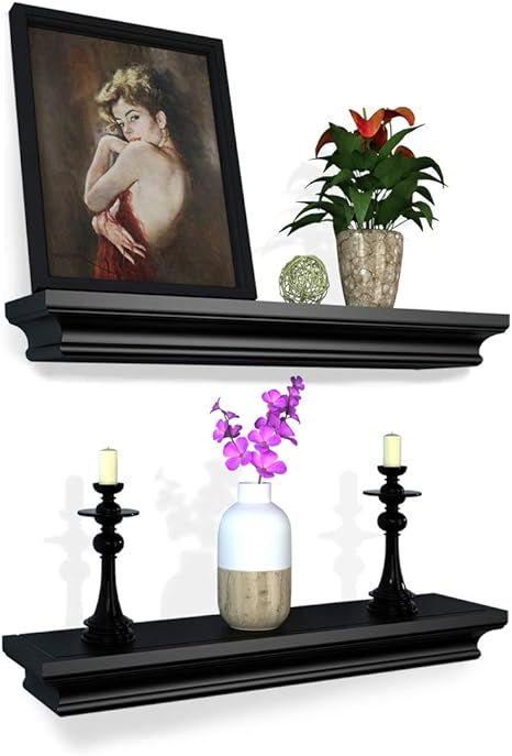 Amazon Com Floating Shelves Crown Molding Wall Mounted Set Of 2 Suitable For Living Room Bedroom Or Bathroom Black 17x4x1 8 Kitchen Dining