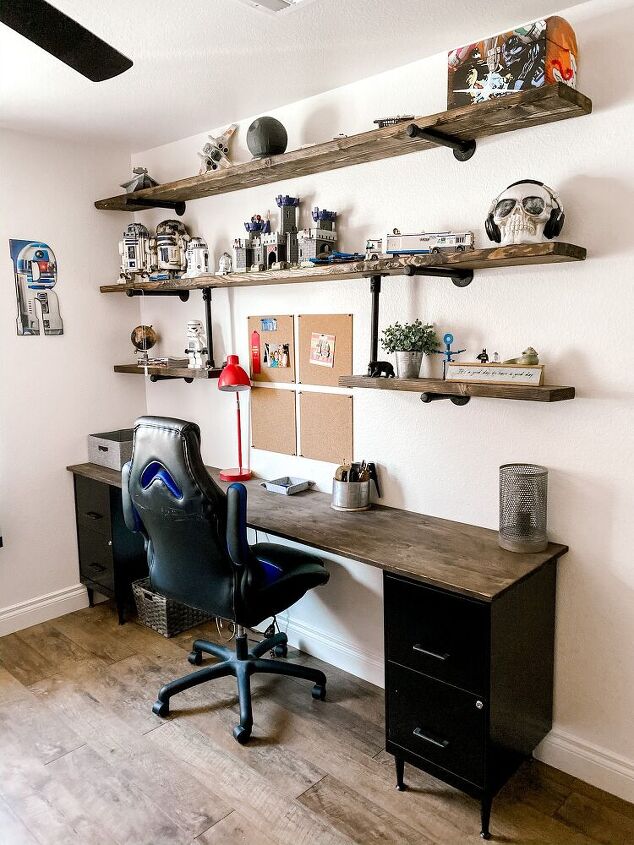 Read on dear one because i will show you how to build the perfect diy industrial farmhouse desk for a small home office. The desk build was super simplei used a miter saw to cut my desk boards to the exact width of the windowtrim 78 and set them to the side. Make your way over to house by hoff to find out how to create your own industrial rolling pipe desk.