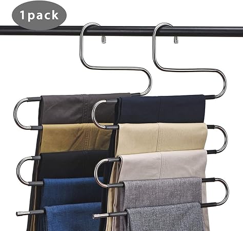Ceispob Space Saving Pants Hangers Non Slip Stainless Steel Clothes Pants Hanger 5 Tiers Design S Shape Pants Rack Closet Storage Organizer For Pants Jeans Trousers Scarf Hanging 1 Pack Amazon Co Uk Diy