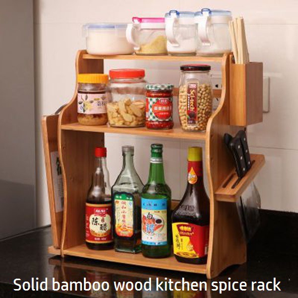 Wooden Kitchen Table Spice Rack Diy Wood Shelves Portable Storage Organizers Shopee Malaysia