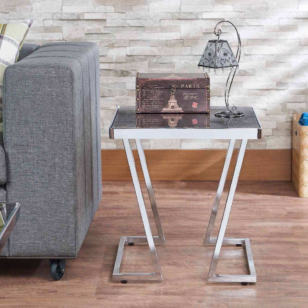V Shape Metal Post Legs Black Glass Side Table Safe Green Furniture Supplier Slicethinner