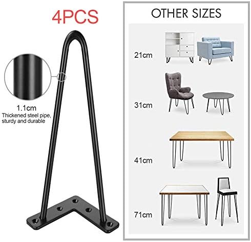 4 Pcs Diy Furniture Metal Dining Table Legs With Protector Feet 10mm Solid Steel Coffee Table Legs For Home Office Desk End Table Nightstand 71cm 28in 2 Rod Black Spraying Hairpin
