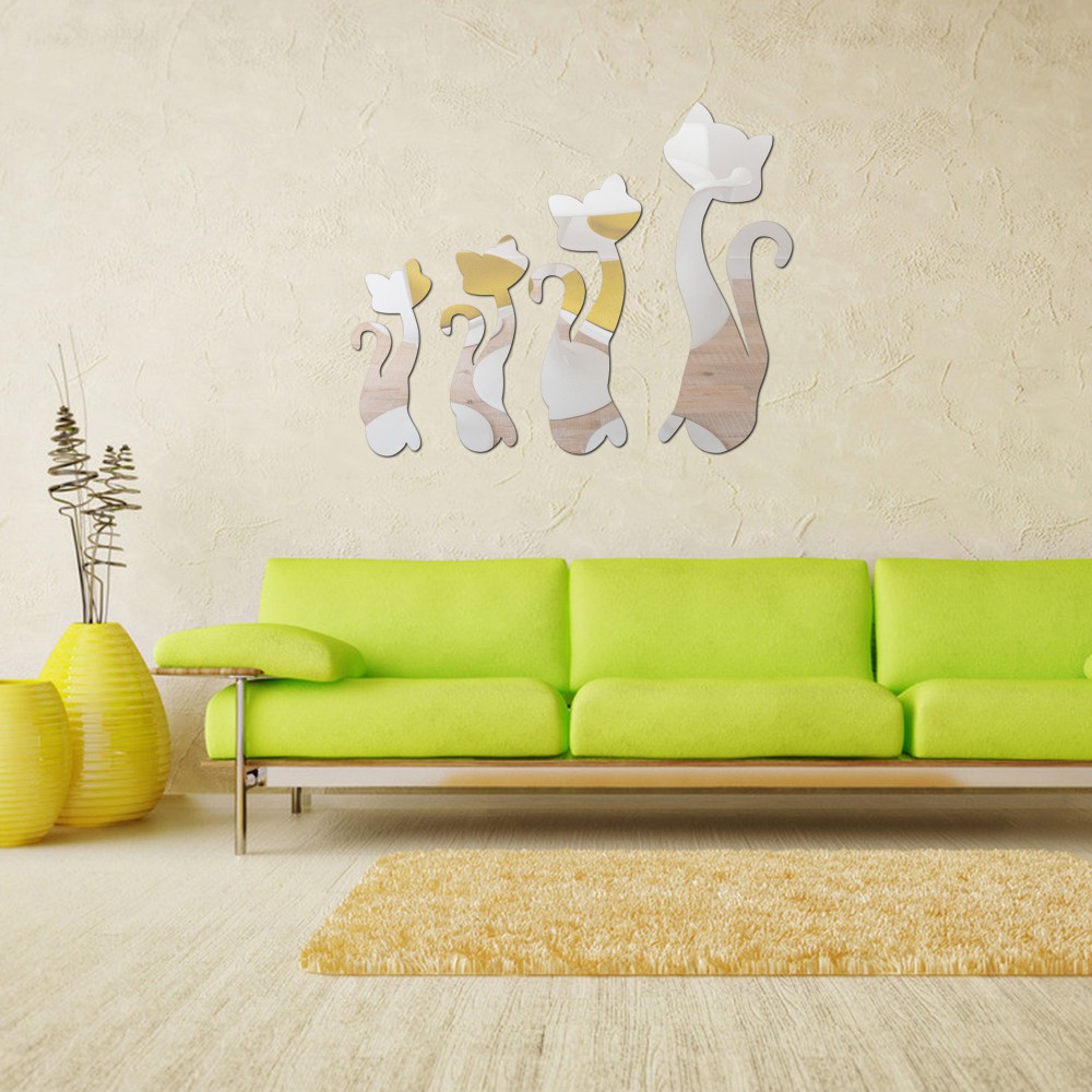 Modern 3d Acrylic Mirror Diy Four Small Cat Mirror Wall Stickers